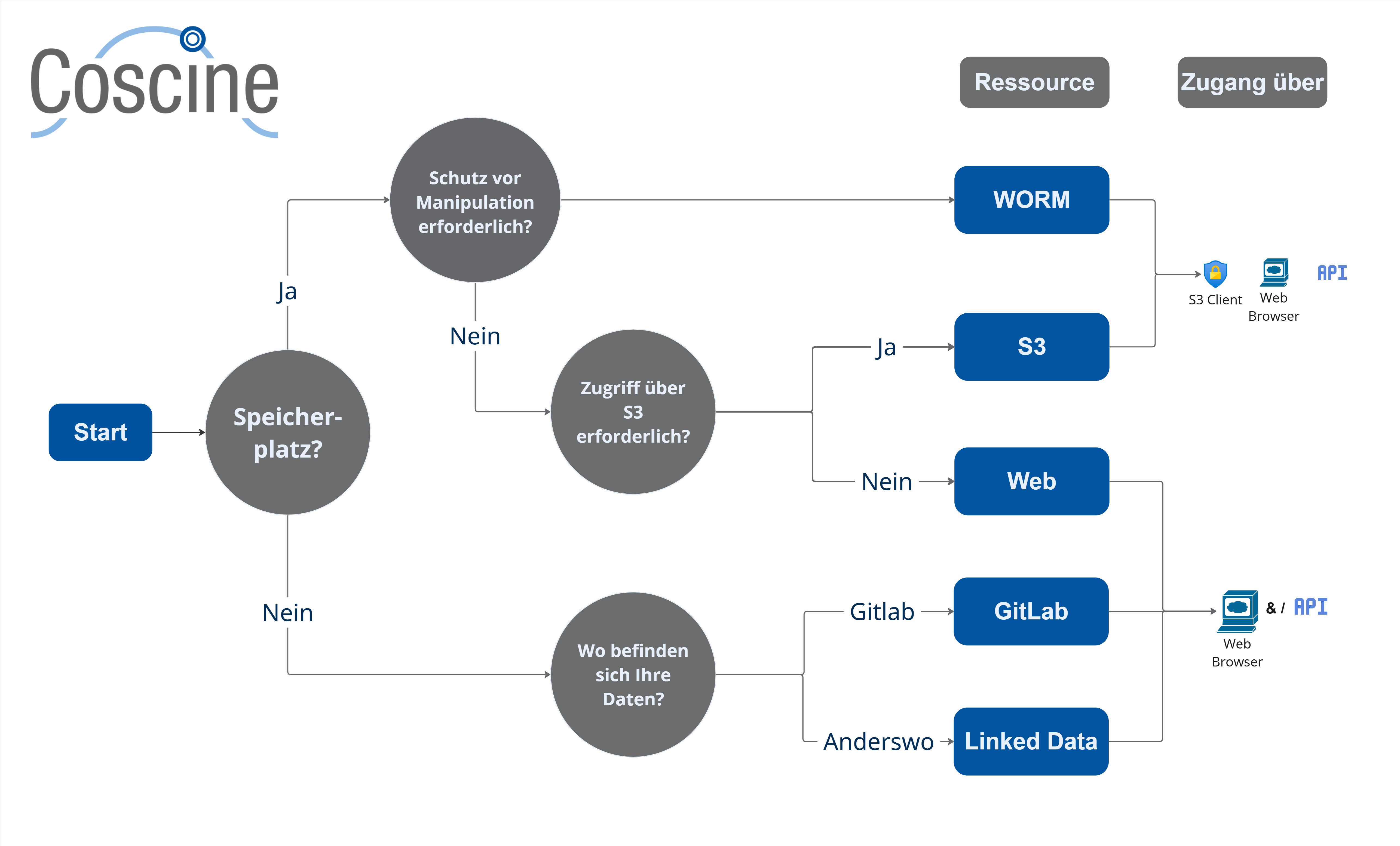 Coscine ist eine Plattform für Forschungsdatenmanagement (FDM), die eine strukturierte Ablage, kollaborative Zusammenarbeit sowie eine langfristige Speicherung von Forschungsdaten innerhalb von Forschungsprojekten ermöglicht. Dabei werden die FAIR-Prinzipien implizit durch Coscine unterstützt . Die Speicherplatzbeantragung erfolgt über ein elektronisches Projektantragsverfahren, welches über die Plattform Coscine-JARDS durchgeführt wird . Beim Ausfüllen eines Speicherplatzantrags müssen die im Folgenden beschriebenen Kriterien beachtet werden. Eine Berücksichtigung der aufgelisteten Kriterien ist notwendig für eine positive Begutachtung. Zusätzlich wird dadurch sichergestellt, dass Ihr Antrag möglichst schnell bearbeitet werden kann, da keine oder wenige Rückfragen durch das FDM-Personal nötig sind, um fehlende Informationen bei Ihnen einzuholen.